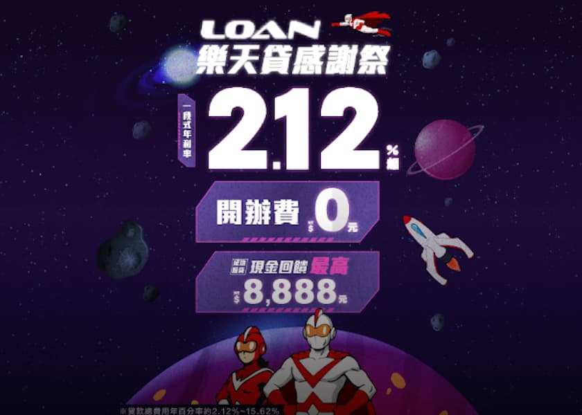 樂天國際 | 10年期最低年利率僅2.12%、且免開辦費 |